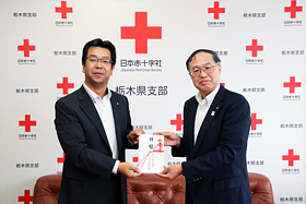 平成29年9月、「九州北部豪雨災害義援金」を当行全営業店窓口への募金箱設置および当行役職員に募集し、被災者の方々の救援や被災地の復旧に役立てていただくため、日本赤十字社栃木支部へ790,741円を寄贈いたしました。