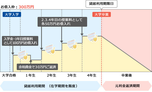 (例)お子さまの大学等の卒業予定年月:令和5年3月…貸越利用期限日:令和5年4月30日