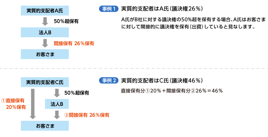 法人のお客さまの事業活動に支配的な影響力を有すると認められる方を指します。