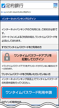 - ワンタイムパスワード利用申請画面が表示されます。