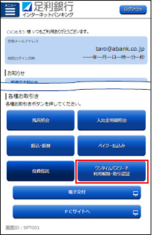 ワンタイムパスワードの利用開始手続き(操作)方法