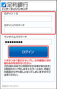 - ログインIDとログインパスワードを入力し、[ログイン]ボタンをタップしてください。