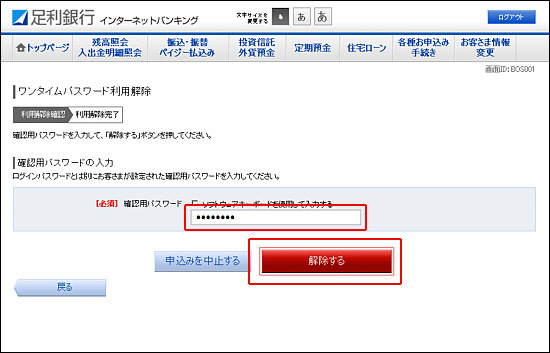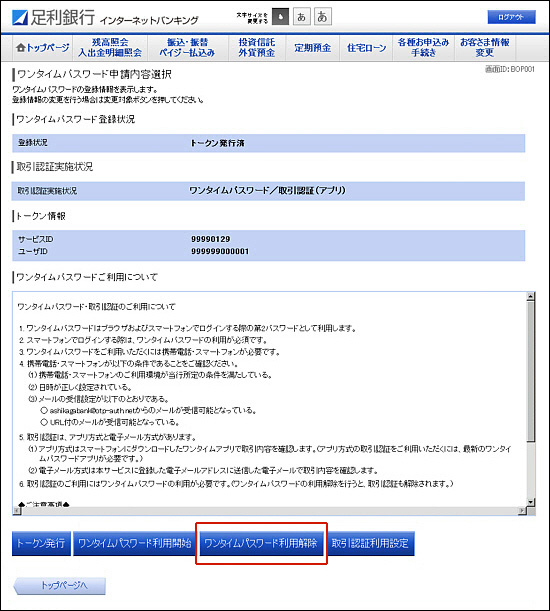 - 3.[ワンタイムパスワード利用解除]をクリックしてください。