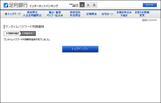 - 5.ワンタイムパスワードの利用解除が完了します。