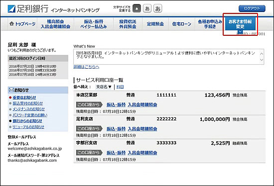 - メニュー画面の[お客さま情報変更]をクリックしてください。