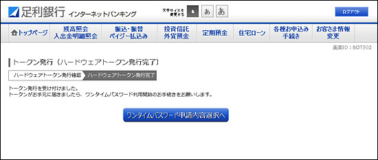- ハードウェアトークンのお申込み手続きが完了します。